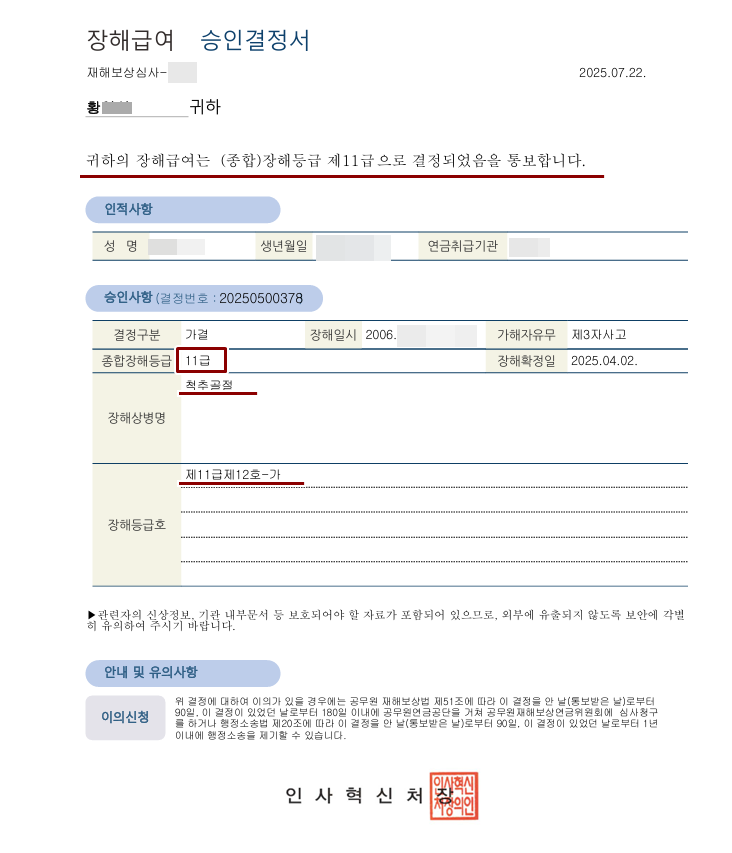 2025³â 4¿ù 2ÀÏ ÀåÇØ°¡ È®Á¤µÇ¾ú°í °°Àº ÇØ 7¿ù 22ÀÏ °ø¹«¿øÀåÇØ Á¦11±Þ À¸·Î ½ÂÀεǾú½À´Ï´Ù.